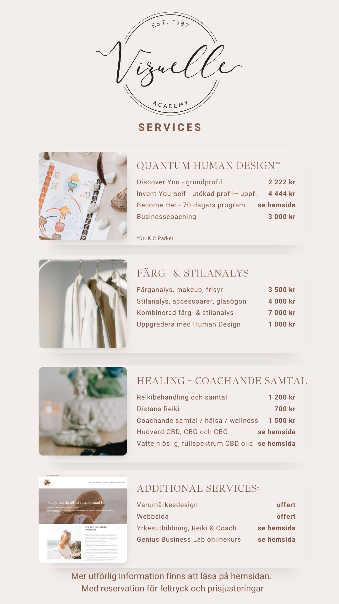 Här skapar vi ditt synliga jag – från stil och färg till digitalt varumärke. Jag guidar dig i färg- och stilval, samt design av hemsidor och digitala lösningar som speglar din personlighet och vision.